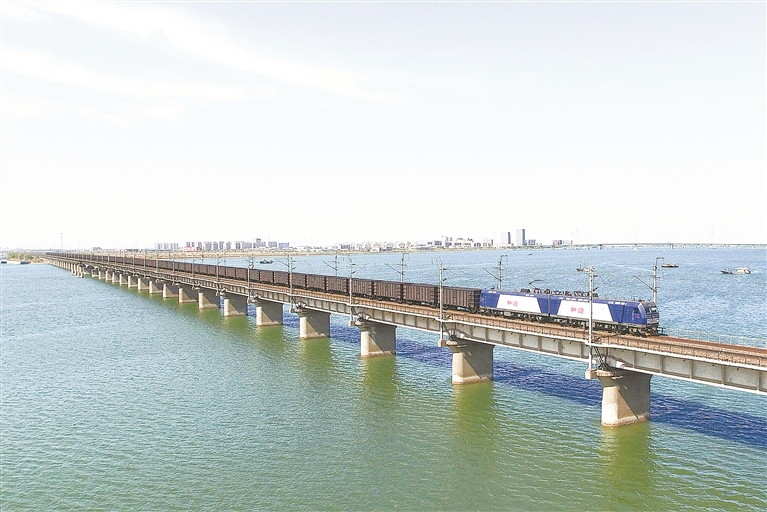 A 20,000-Ton Heavy Thermal Coal Train Runs Across the Caofeidian Grand Bridge