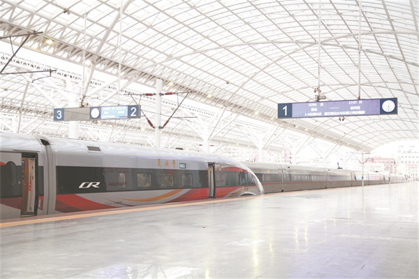 復興號列車(chē)??壳鄭u站站臺。劉 晗 攝