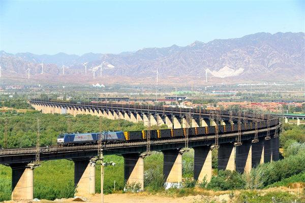2萬(wàn)噸重載列車(chē)行駛在“中國重載第一路”大秦鐵路上(攝影:張炯)
