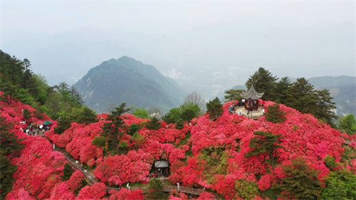 五一假期,湖北麻城龜峰山杜鵑花迎來(lái)最佳觀(guān)賞期,中國鐵路武漢局集團有限公司(下稱(chēng)武鐵)在漢口、麻城北站間每天往返開(kāi)行D9300、D9299次兩趟動(dòng)車(chē)組列車(chē)方便旅客賞花。