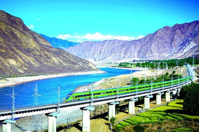 復興號動(dòng)車(chē)組列車(chē)馳騁在青藏高原。資料圖片