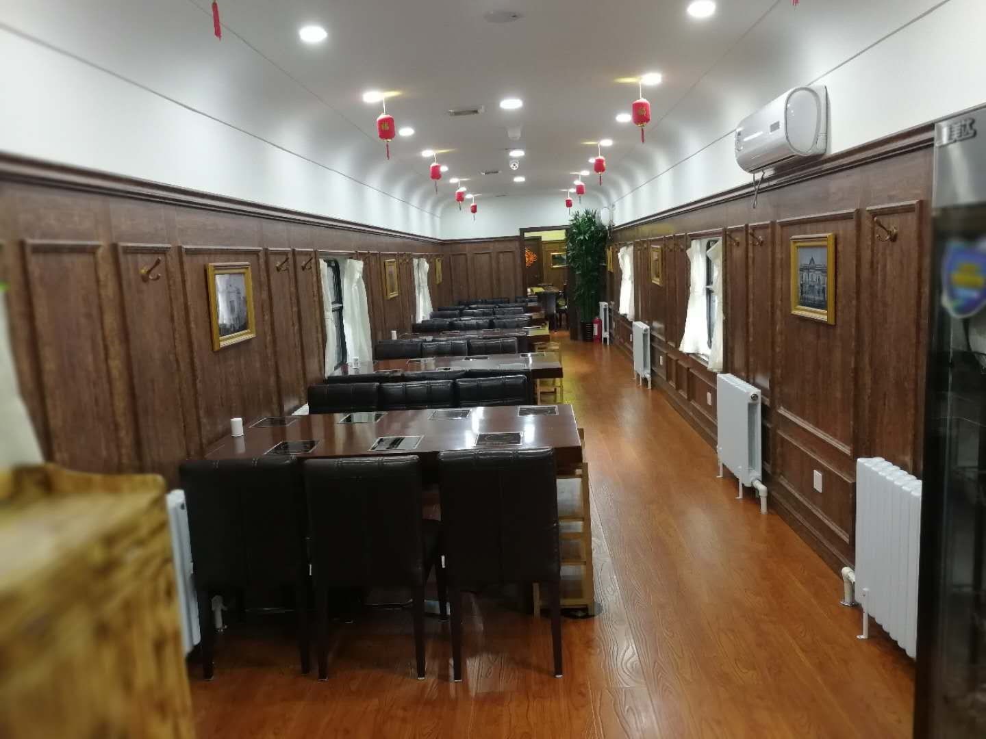 由仿制的內燃機車(chē)和兩節綠皮車(chē)廂組成,占地360平方米。機車(chē)部分為豪華包房,一號車(chē)廂為卡臺式餐廳,二號車(chē)廂餐位可靈活組合,加上室外月臺,可同時(shí)容納158人就餐。餐廳布局為歐式風(fēng)格,主營(yíng)俄式西餐和創(chuàng )意西餐。同時(shí)提供烤肉、坑烤等菜品,并配備自釀啤酒和各種進(jìn)口酒類(lèi),24小時(shí)營(yíng)業(yè)。