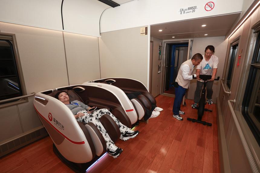 為提升出行體驗,哈爾濱局集團公司對列車(chē)硬件設施進(jìn)行全方位適老化改造,是我國首個(gè)配備專(zhuān)屬“智慧健康屋”的旅客列車(chē)。健康屋內配置有脊柱專(zhuān)家理療床、智能生物能量?jì)x、AI健康篩查儀等專(zhuān)業(yè)康養設備,全方位保障旅客健康安全。