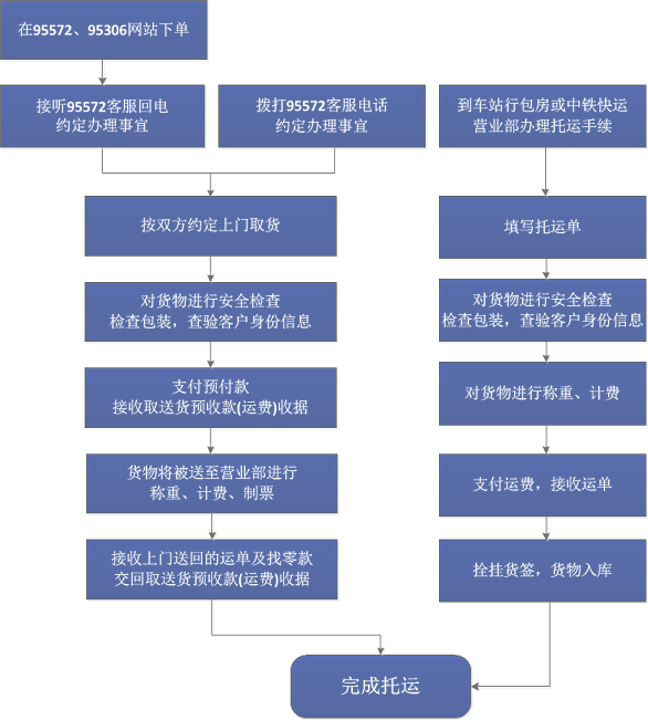 站到站行李包裹是指通過(guò)旅客列車(chē)行李車(chē)運輸的小件貨物,由中鐵快運公司和鐵路局共同辦理,包括行李、包裹兩種辦理方式,由辦理行包業(yè)務(wù)的車(chē)站行包房或中鐵快運營(yíng)業(yè)部向客戶(hù)提供行李包裹托運和領(lǐng)取服務(wù)。